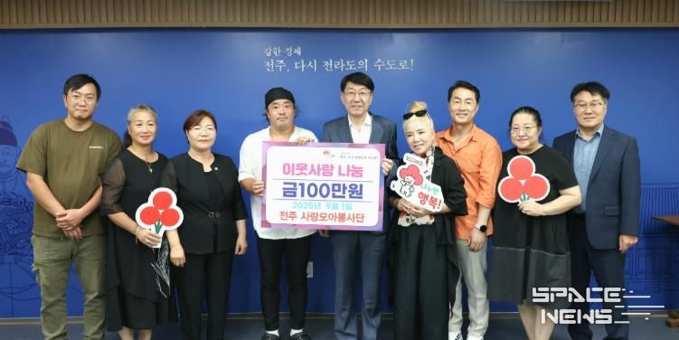 스페이스뉴스 스페이스뉴스 기자 | 전주사랑모아봉사단은 1일 전주시장실을 찾아 단원들이 버스킹 공연을 통해 모은 수익금 100만 원을 저소득 취약계층을 위해 기부했다.