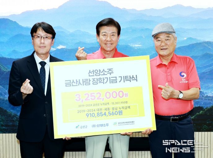 스페이스뉴스 스페이스뉴스 기자 | ㈜선양소주(대표 김규식)는 지난 1일 지역 인재 육성을 위해 금산군 장학금 325만2000원을 (재)금산교육사랑장학재단에 기탁했다