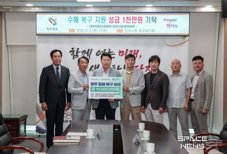 스페이스뉴스 스페이스뉴스 기자 | 대한전문건설협회 세종시·충청남도회(도회장 김종언) 및 당진시 운영위원회(위원장 윤도현)가 2일 당진시청을 방문해, 호우 피해를 본 지역 주민들을 위한 수해 성금 1,000만 원을 기탁했다.