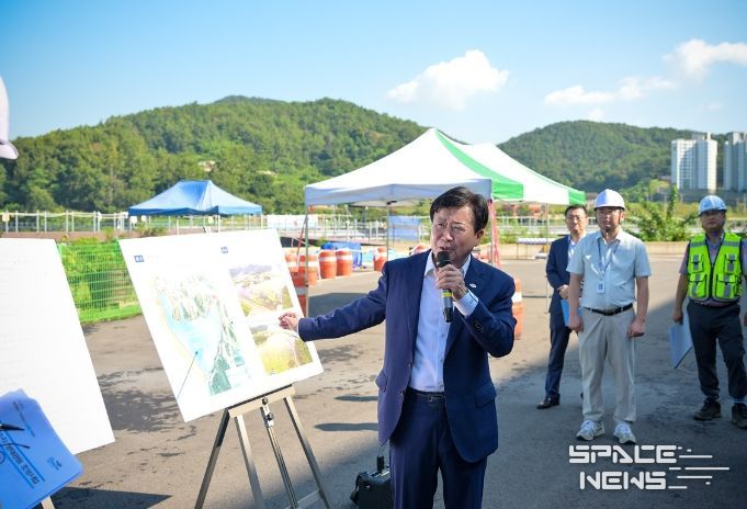 스페이스뉴스 스페이스뉴스 기자 | 정기명 여수시장이 9월 5일 소라면 죽림리 관기 저수지 생태공원 조성 현장을 방문해 데크길 조성 진행 상황과 안전 관리 실태를 점검했다.