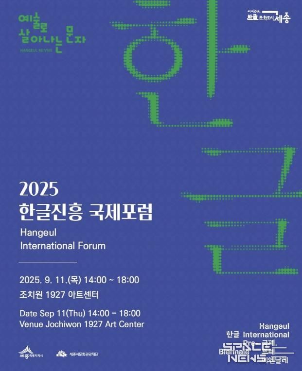 스페이스뉴스 스페이스뉴스 기자 | 세종시문화관광재단은 오는 11일 오후 2시, 조치원 1927 아트센터에서 '2025 한글진흥 국제포럼'을 개최한다.
