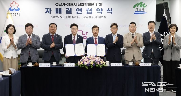 스페이스뉴스 스페이스뉴스 기자 | 계룡시와 경기도 성남시가 8일 성남시청에서 우호 교류 증진과 상호 발전 자매결연 협약을 체결했다고 밝혔다.