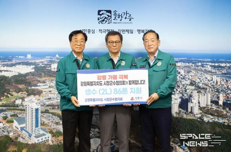 스페이스뉴스 스페이스뉴스 기자 | 강원특별자치도 시장군수협의회는 강릉지역 가뭄 재난사태 극복을 위해 강릉시에 생수 86톤을 긴급지원하기로 했다.