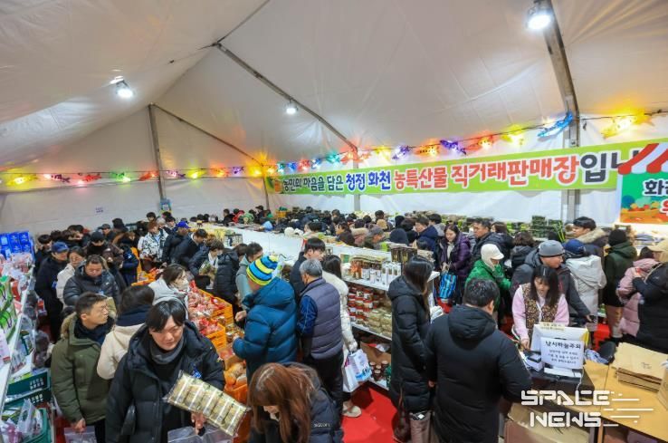 스페이스뉴스 스페이스뉴스 기자 | 청정한 화천의 산과 들에서 자란 싱싱한 농산물들이 2026 얼음나라 화천산천어축제장에서 관광객들과 만난다.