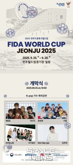 개막식에서는 세계 정상급 선수단의 입장을 시작으로, △개막선언 △선수단·심판대표 선서 △드론축구볼 퍼포먼스가 이어져 대회의 서막을 연다. 이어, 라이즈(RIIZE), 아홉(AHOF), 아이칠린(ICHILLIN’), 김희재 등 인기 가수들이 무대를 꾸미며 축제의 열기를 최고조로 끌어올릴 예정이다.