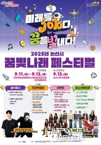 스페이스뉴스 스페이스뉴스 기자 | 논산시는 11일부터 13일까지 3일간, 청소년의 성장과 발전을 지원하고 진로 탐색과 문화 교류의 장을 마련하기 위한 ‘2025 논산시 청소년 꿈빛나래 페스티벌’을 개최한다.