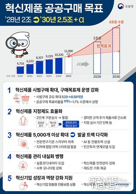 스페이스뉴스 스페이스뉴스 기자 | 조달청은 혁신제품 공공구매를 2030년까지 3조원 수준으로 확대하기 위해 혁신제품 지정과 운영 전반을 개선하고 내실화한다.