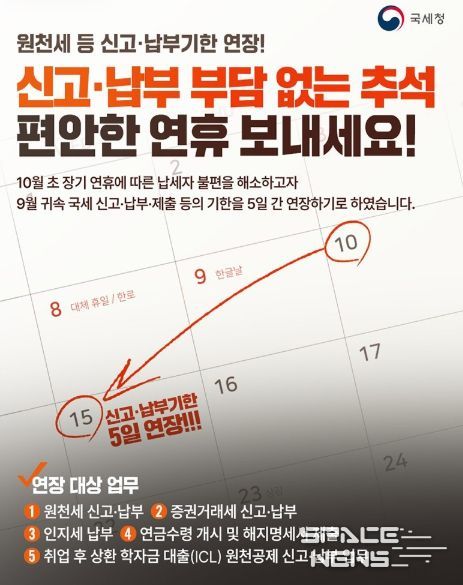 스페이스뉴스 스페이스뉴스 기자 | 원천세 등 신고·납부기한 연장!