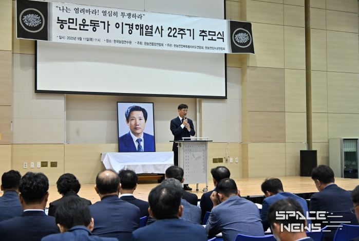 스페이스뉴스 스페이스뉴스 기자 | 장수군은 (사)한국농업경영인중앙연합회 주관으로 11일 장수읍 한국농업연수원에서 장수 출신 농민운동가 故이경해 열사의 22주기 추모식을 거행했다고 밝혔다.