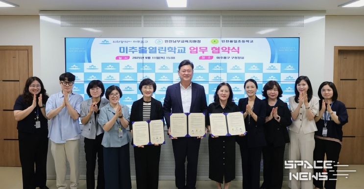 스페이스뉴스 스페이스뉴스 기자 | 인천 미추홀구는 11일 구청장실에서 인천남부교육지원청, 인천용일초등학교(교장 김수경)와 함께 용일초 다목적 강당 주민개방을 위한 ‘미추홀열린학교 업무협약’을 체결했다.