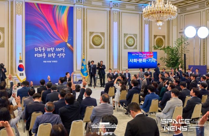 이 대통령은 이날 오전 10시 청와대 영빈관에서 '회복을 위한 100일, 미래를 위한 성장'을 주제로 열린 취임 100일 기자회견에서 "앞으로 남은 4년 9개월은 '도약과 성장의 시간'"이라며 이같이 말했다.