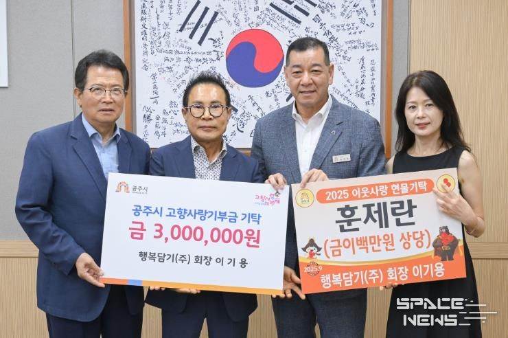 스페이스뉴스 스페이스뉴스 기자 | 공주시는 지난 11일 행복담기㈜ 이기용 회장이 고향사랑기부금 300만 원과 훈제 달걀(약 200만 원 상당)을 전달했다고 밝혔다.