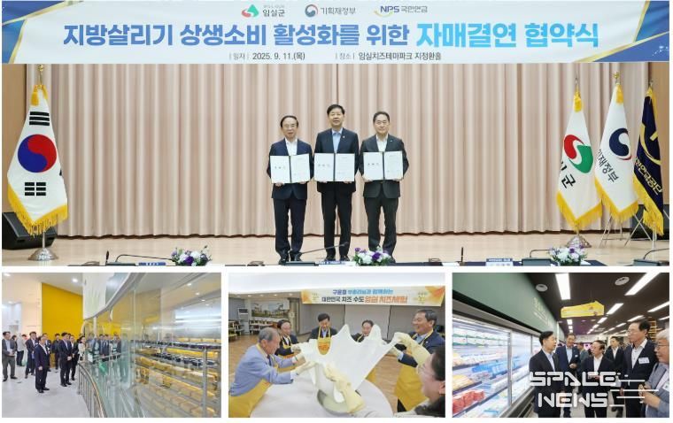 군은 지난 11일 임실치즈테마파크 지정환홀에서 기획재정부 구윤철 경제부총리 겸 장관과 심 민 군수, 국민연금공단 김태현 이사장이 참석한 가운데 지방살리기 상생소비 활성화를 위한 자매결연 협약식을 체결했다.