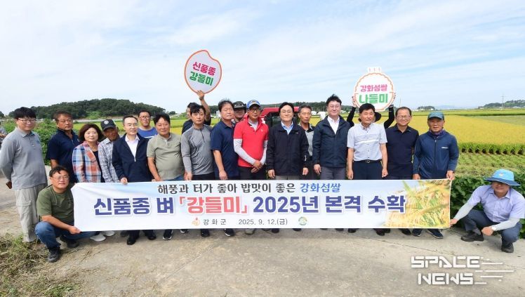 스페이스뉴스 스페이스뉴스 기자 | 강화군은 12일 교동면 삼선리에서 신품종 조생종 벼 ‘강들미’ 수확 행사를 열었다.