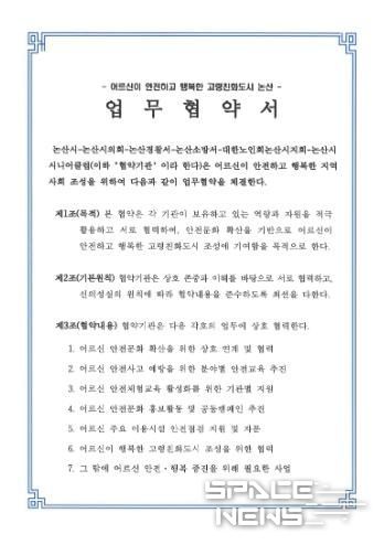 스페이스뉴스 스페이스뉴스 기자 | 논산시가 어르신 안전사고 예방 및 안전문화 확산을 위해 6개 기관이 함께하는 업무협약을 체결했다.