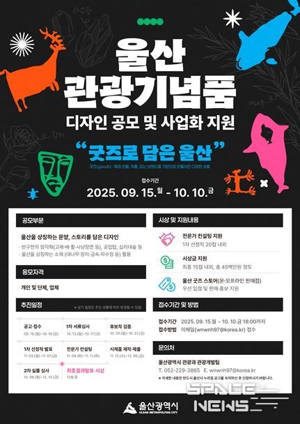 스페이스뉴스 스페이스뉴스 기자 | 울산시는 고부가가치 관광기념품 산업의 발전기반 조성과 경쟁력 있는 울산 관광기념품(울산 굿즈) 개발을 위해 ‘울산 관광기념품 디자인 공모 및 사업화 지원’ 공모전을 개최한다고 밝혔다.