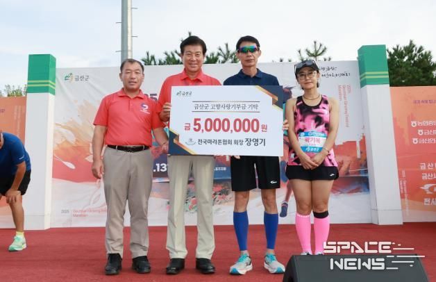 스페이스뉴스 스페이스뉴스 기자 | 장영기 전국마라톤협회장은 지난 14일 금산세계인삼축제 투데이 마라톤대회 개최를 기념해 금산군 발전을 위한 고향사랑기부금 500만 원을 쾌척했다.
