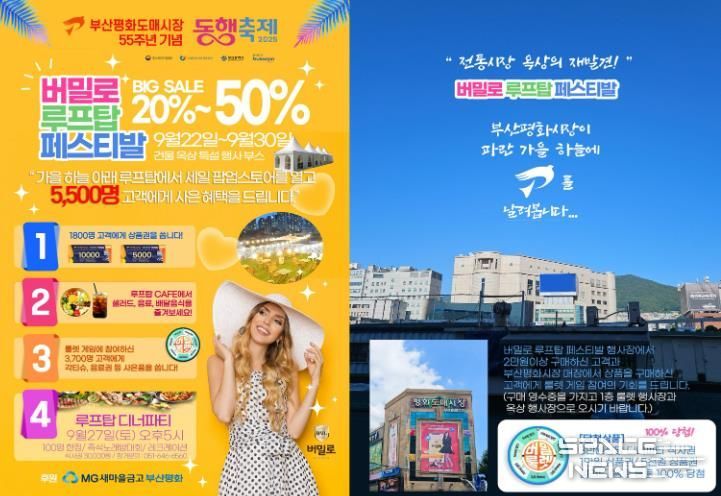 스페이스뉴스 스페이스뉴스 기자 | 부산진구는 부산평화시장 번영회 주최로 개점 55주년 기념 ‘버밀로 루프탑 페스티벌’을 9월 22일부터 9월 30일까지 부산평화시장 옥상에서“ 개최한다고 밝혔다.