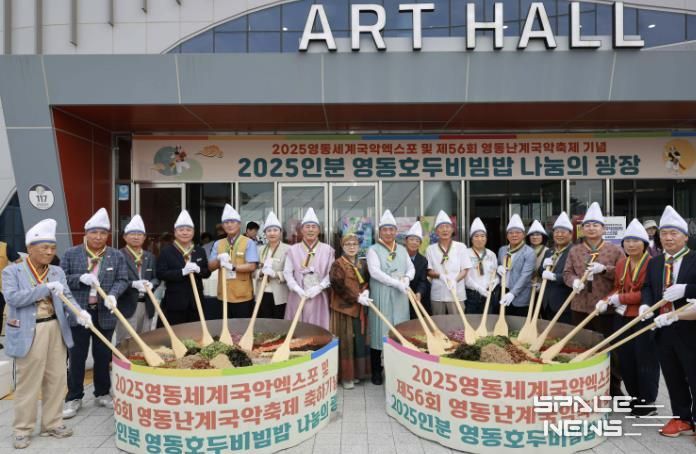 스페이스뉴스 스페이스뉴스 기자 | 약선명인 정영숙 정림한정식 대표는 지난 14일 2025 영동세계국악엑스포와 제56회 영동난계국악축제를 기념하여 영동복합문화예술회관 앞에서 2,025인분 비빔밥 나눔 행사를 개최했다.