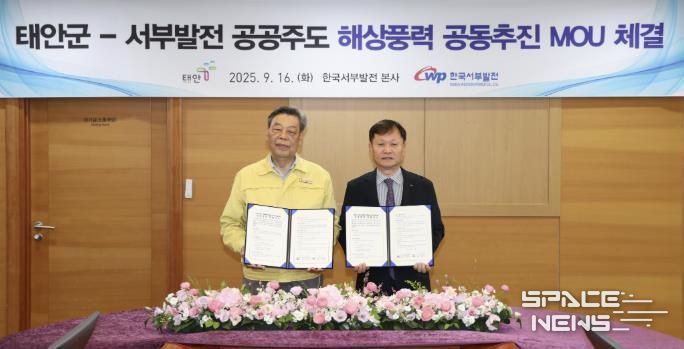 스페이스뉴스 스페이스뉴스 기자 | ‘태안군 공공주도 해상풍력 단지개발 사업’의 성공적 수행을 위해 태안군과 한국서부발전이 손을 맞잡았다.