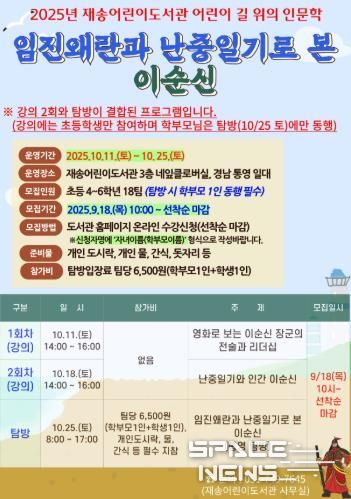 스페이스뉴스 스페이스뉴스 기자 | 해운대구는 ‘여행하는 어린이 길 위의 인문학’프로그램 ‘임진왜란과 난중일기로 본 이순신’참가자를 모집한다.