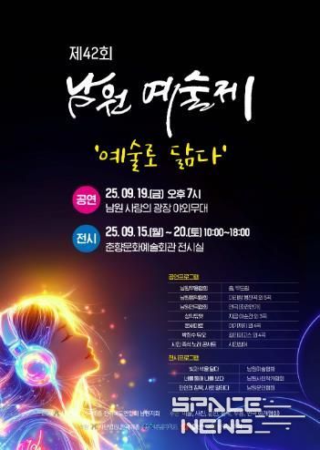 스페이스뉴스 스페이스뉴스 기자 | 남원시가 후원하는 제42회 남원예술제가 ‘예술을 닮다’를 주제로 9월 15일부터 20일까지 춘향문화예술회관 전시장과 남원 사랑의 광장에서 개최한다.