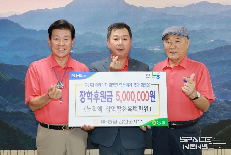 스페이스뉴스 스페이스뉴스 기자 | NH농협은행 금산군지부(지부장 박철우)는 지난 17일 금산군청에서 금산교육사랑장학재단(이사장 조신영)에 장학금 500만 원을 기탁했다.