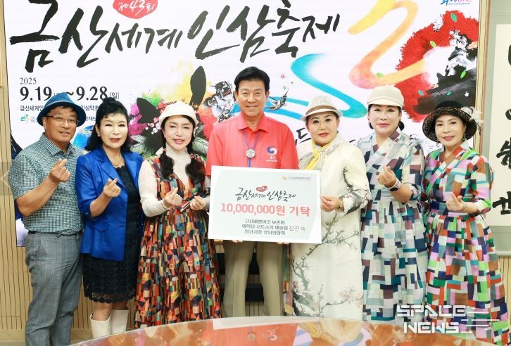 박범인 금산군수는 “축제 성공을 위해 힘을 보태 주신 김진숙 배뱅이굿 보존회장님의 뜻깊은 기부에 감사드린다”며 “국내·외 관람객이 만족할 수 있는 세계적인 축제를 선보일 수 있도록 최선을 다하겠다”고 말했다.
