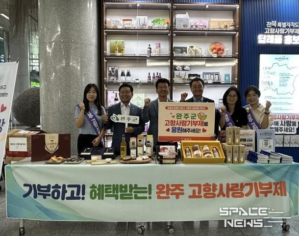스페이스뉴스 스페이스뉴스 기자 | 완주군이 17일 전북특별자치도청 1층 로비에서 열린 ‘고향사랑기부제 홍보 행사’에 참여, 완주 대표 특산품을 소개하고 ‘완주사랑군민제’를 홍보했다.
