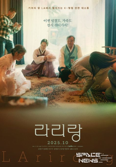 스페이스뉴스 스페이스뉴스 기자 | 미국 LA에서 펼쳐지는 가장 한국적인 명절 이야기를 담은 영화 '라리랑'이 10월 개봉을 확정하고, 어색하면서도 익숙한 명절 풍경을 담은 티저 포스터를 공개했다.[감독: 나선희ㅣ출연: 김종구, 정애화, 이주우, 윤원준, 손문영, 변중희 ㅣ제작: 641필름ㅣ 배급: ㈜누리픽쳐스]