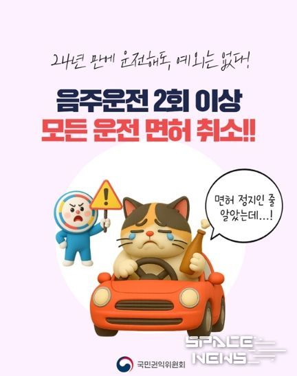 음주운전 2회 이상 모든 운전 면허 취소!!