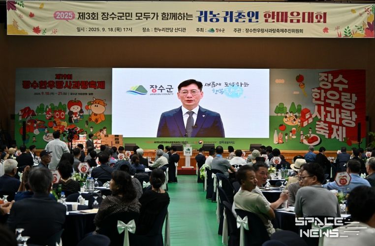 스페이스뉴스 스페이스뉴스 기자 | 장수군은 18일 장수한누리전당 산디관에서 ‘2025 장수군민 모두가 함께하는 귀농귀촌인 한마음대회’를 성황리에 개최했다고 밝혔다.