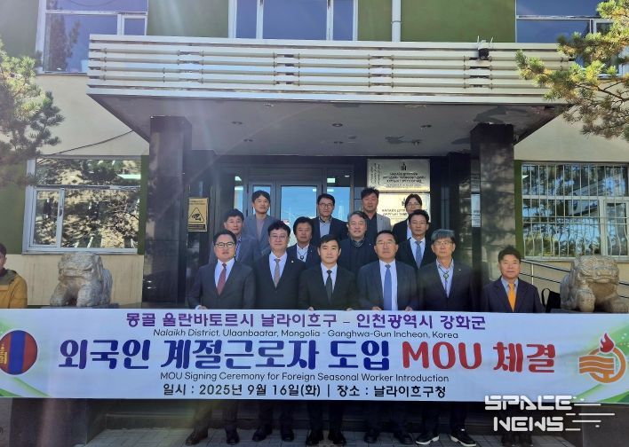 스페이스뉴스 스페이스뉴스 기자 | 강화군은 지난 16일, 몽골 울란바토르시 날라이흐구를 공식 방문해 ‘외국인 계절근로자 도입에 관한 협약(MOU)’을 체결했다고 밝혔다.