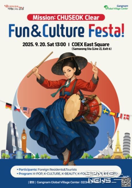 스페이스뉴스 스페이스뉴스 기자 | 꿈이 모이는 도시, 미래를 그리는 서울시 강남구가 9월 20일 오후 1시부터 5시까지 코엑스 동측광장(영동대로 513)에서 외국인 주민과 관광객이 함께하는 다문화 축제 ‘펀앤컬처 페스타 Fun&Culture Festa! (미션 : 추석 클리어)’를 연다.