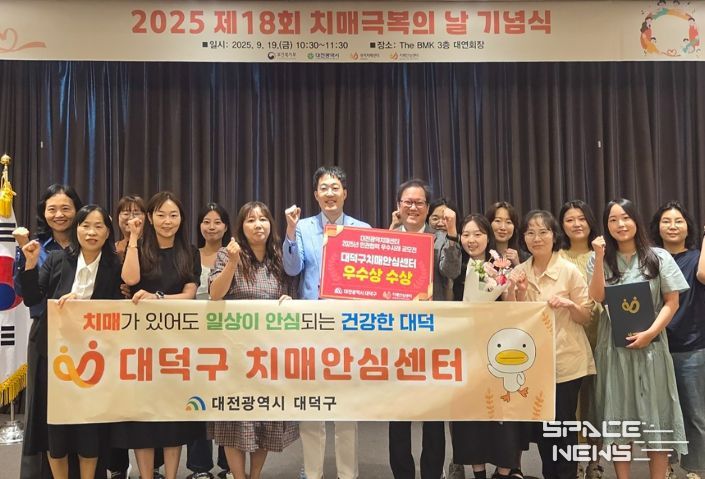 스페이스뉴스 스페이스뉴스 기자 | 대전 대덕구는 19일 대전광역치매센터가 주관한 ‘2025년 치매극복의 날’ 기념행사에서 민관협력 우수사례 부문 우수상을 수상했다고 밝혔다.