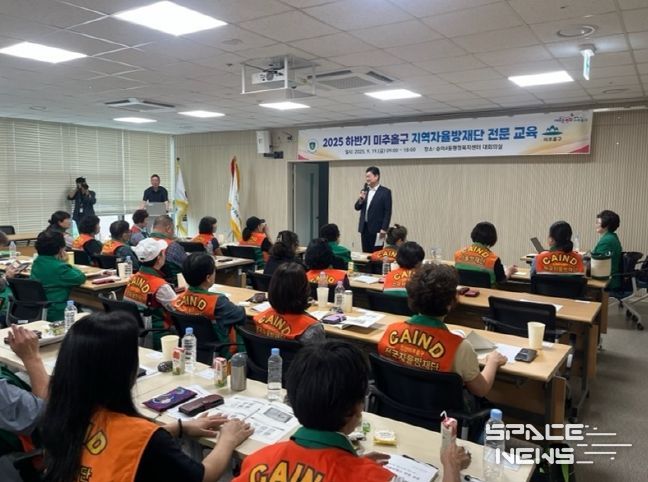 스페이스뉴스 스페이스뉴스 기자 | 인천 미추홀구는 19일 숭의4동 행정복지센터 대회의실에서 지역자율방재단원 50여 명이 참석한 가운데 ‘지역자율방재사 자격증 취득 교육’을 실시했다.