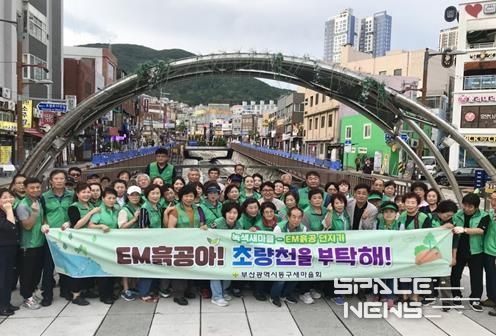스페이스뉴스 스페이스뉴스 기자 | (사)부산광역시동구새마을회는 지난 9월 17일 부산 동구 초량천에서 새마을지도자 60여 명이 참여한 가운데 탄소중립 실천을 위한 ‘EM 흙공 던지기 행사’를 개최했다.