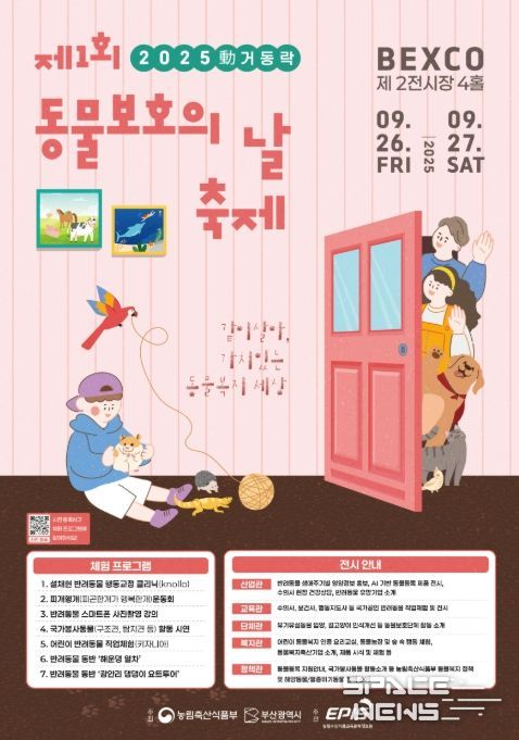 스페이스뉴스 스페이스뉴스 기자 | 농림축산식품부는 9월 26일 ~ 9월 27일 이틀간 부산 벡스코 제2전시장에서 ‘제1회 동물보호의 날’ 기념행사를 개최한다고 밝혔다.