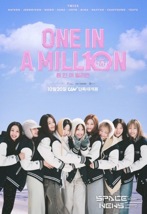 스페이스뉴스 스페이스뉴스 기자 | 트와이스 데뷔 10주년을 기념하는 히스토리 무비 '원 인 어 밀리언(ONE IN A MILL10N)'이 오는 10월 20일 CGV 개봉을 시작으로 글로벌 개봉을 확정 짓고 메인 포스터를 전격 공개했다.[감독: 와사비마요ㅣ출연: 트와이스ㅣ제작: 미스틱스토리ㅣ배급: CJ CGV, CJ 4DPLEXㅣ장르: 다큐멘터리]