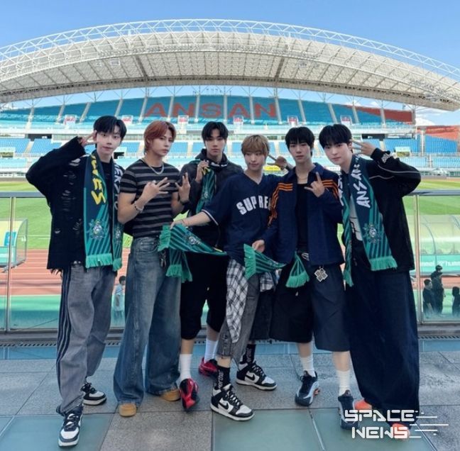 비보이즈(윤서, 구현, 민준, 학성, 타쿠마, 원천)는 지난 21일 안산 와~스타디움에서 열린 하나은행 K리그2 2025 30라운드 안산 그리너스 FC와 충북청주 경기에 초청받아 시축에 나섰다.