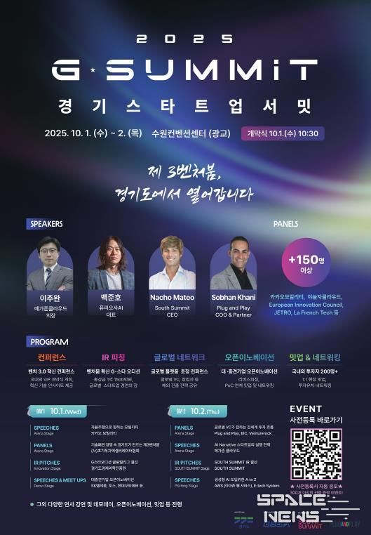 스페이스뉴스 스페이스뉴스 기자 | 국내 최고 수준의 글로벌 스타트업 투자 박람회인 ‘경기 스타트업 서밋(G-SUMMIT)’이 오는 10월 1일부터 2일까지 수원컨벤션센터에서 열린다.