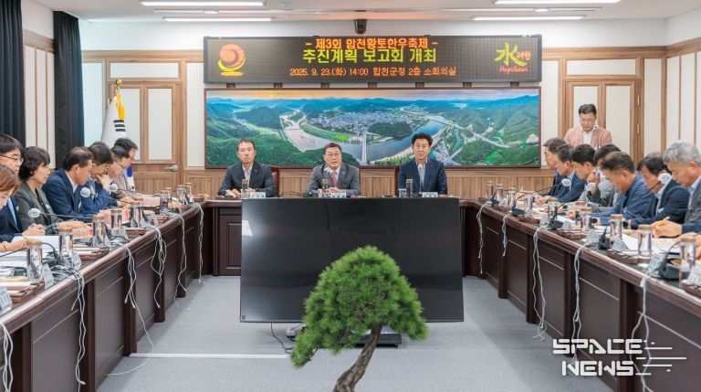 스페이스뉴스 스페이스뉴스 기자 | 합천군은 9월 23일 군청 2층 소회의실에서 제3회 합천황토한우축제 추진계획 보고회를 열었다. 이번 보고회는 합천축산업협동조합(조합장 김용욱)이 주최·주관하고 합천군과 합천군의회가 후원하는 행사로, 축제의 성공적 개최를 위해 진행 상황을 점검하고 부서 간 협력 체계를 공고히 하기 위해 마련됐다.