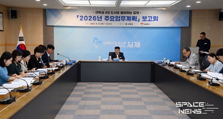 스페이스뉴스 스페이스뉴스 기자 | 김제시는 지난 23일부터 24일까지 2일간 정성주 시장 주재로‘2026년 주요업무계획 보고회’를 개최했다고 밝혔다.