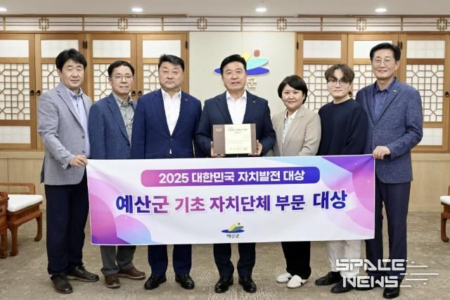 스페이스뉴스 스페이스뉴스 기자 | 예산군은 지난 23일 한국자치발전연구원이 주최한 ‘2025년 대한민국 자치발전 대상’ 시상식에서 기초자치단체 부문 대상 수상을 수상했다고 밝혔다.