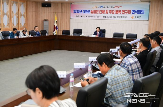 스페이스뉴스 스페이스뉴스 기자 | 강화군은 지난 24일 관내 농업인 단체장과 주요 품목 연구회 대표들과 함께 연석회의를 열고, 가을철 수확기를 맞은 농산물의 고품질 유지와 농업 발전 방안을 모색했다.