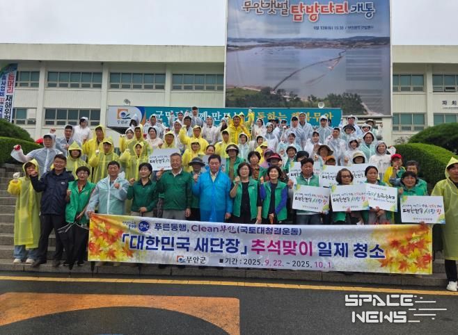 스페이스뉴스 스페이스뉴스 기자 | 전남 무안군은 25일 오전, 추석 명절을 앞두고 군민과 귀성객에게 쾌적한 환경을 제공하기 위해 전국 단위 환경정비 캠페인인 '대한민국 새단장' 행사와 함께 대대적인 환경정화 활동을 실시했다고 밝혔다.
