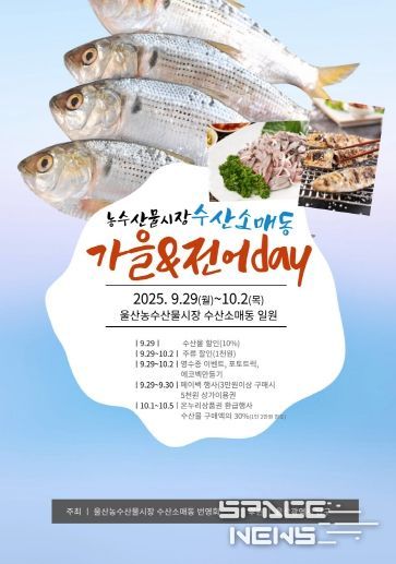 스페이스뉴스 스페이스뉴스 기자 | 울산 남구는 9월 29일부터 10월 2일까지 나흘간 남구 제5호 골목형상점가로 지정된 울산농수산물시장 수산소매동에서‘가을&전어day’축제를 개최한다고 밝혔다.