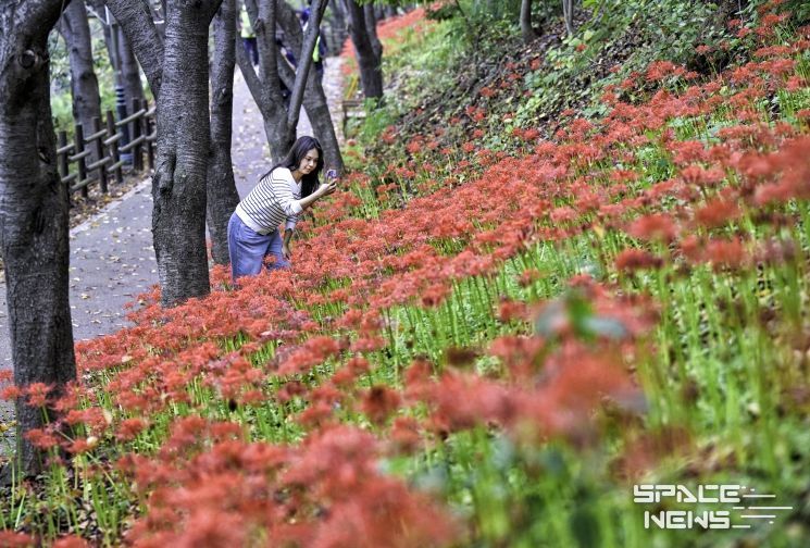 스페이스뉴스 스페이스뉴스 기자 | 울산 남구 선암호수공원이 가을을 붉게 수놓은 꽃무릇으로 물들고 있다.