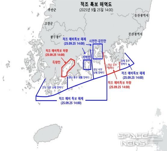 스페이스뉴스 스페이스뉴스 기자 | 해양수산부는 9월 25일 16시부로 적조 위기경보 단계를 ‘경계’에서 ‘주의’로 하향 조정한다고 밝혔다.