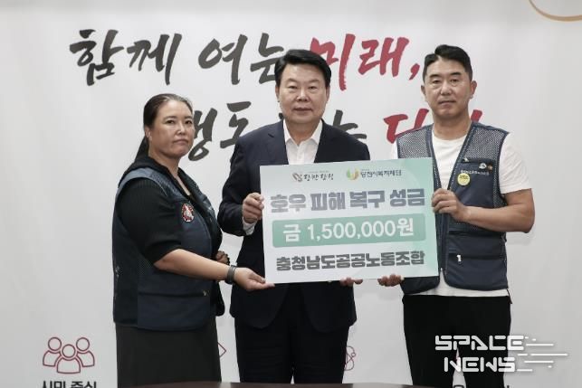 스페이스뉴스 스페이스뉴스 기자 | 당진시는 지난 25일 당진시청 접견실에서 충청남도 공공노동조합이 수해 피해 복구를 위해 성금 150만 원을 기탁했다고 26일 밝혔다.